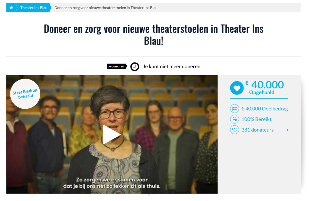 Opmaken van diverse uitingen en drukwerk voor een Crowdfunding campagne om een nieuwe tribune voor Theater Ins Blau te kunnen realiseren.